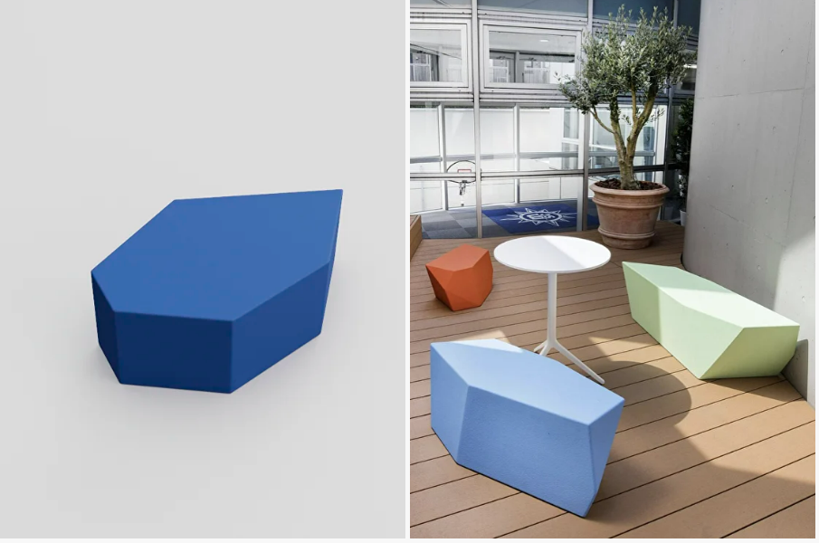 Rock Elements are polygon-inspired benches featuring sharp, clean edges and soft foam for a sleek yet inviting design. Lightweight and versatile, they can be easily repositioned to adapt to any space. Built to withstand the elements, these UV-stable and weather-resistant pieces are ideal for both indoor and outdoor use. Available insix unique designs, Rock Elements bring a modern, organic aesthetic to a variety of settings.
